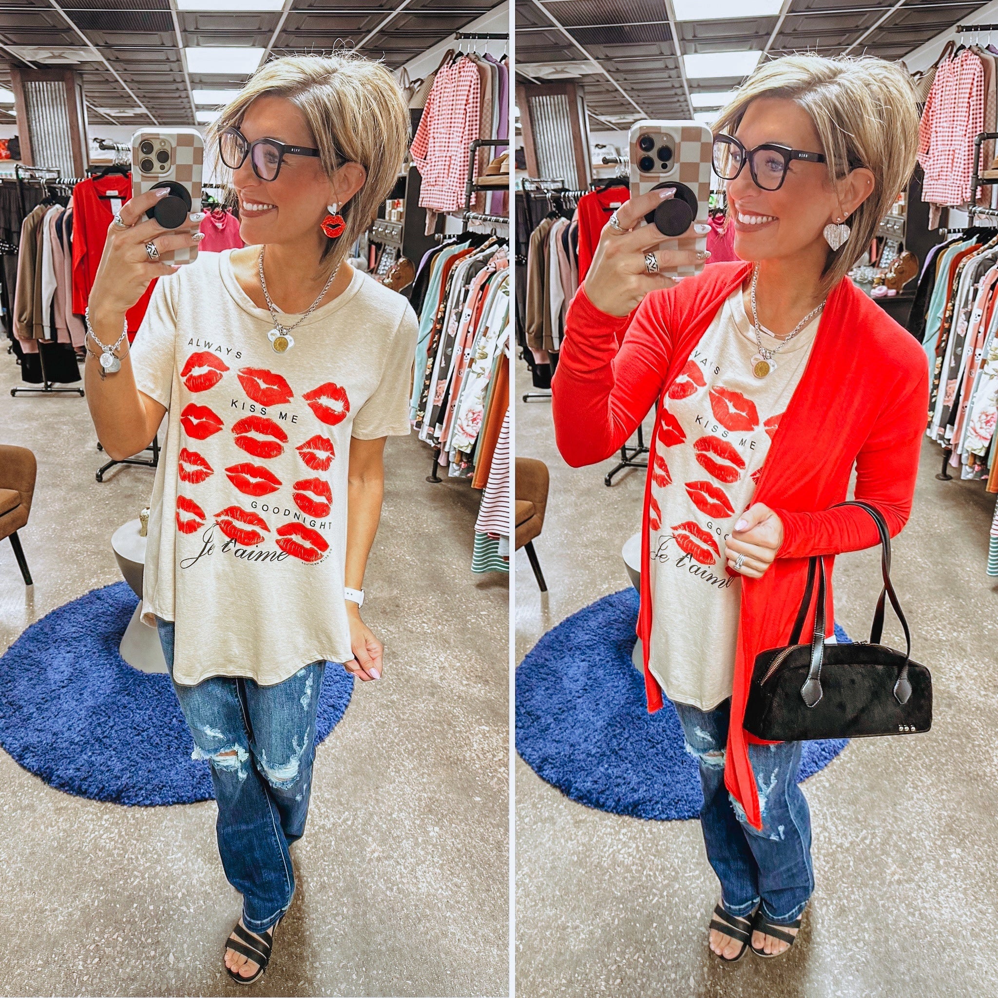 Such a darling, fun, breezy sweater that is Florida approved! TTS with a slight boxy roominess, those perfect side slits, and the cutest hearts all over. I have the hot pink seamless tank to wear underneath, but you could wear almost any color. You can absolutely wear this all year around, but it is also so perfect for Valentine's Day! 🩷